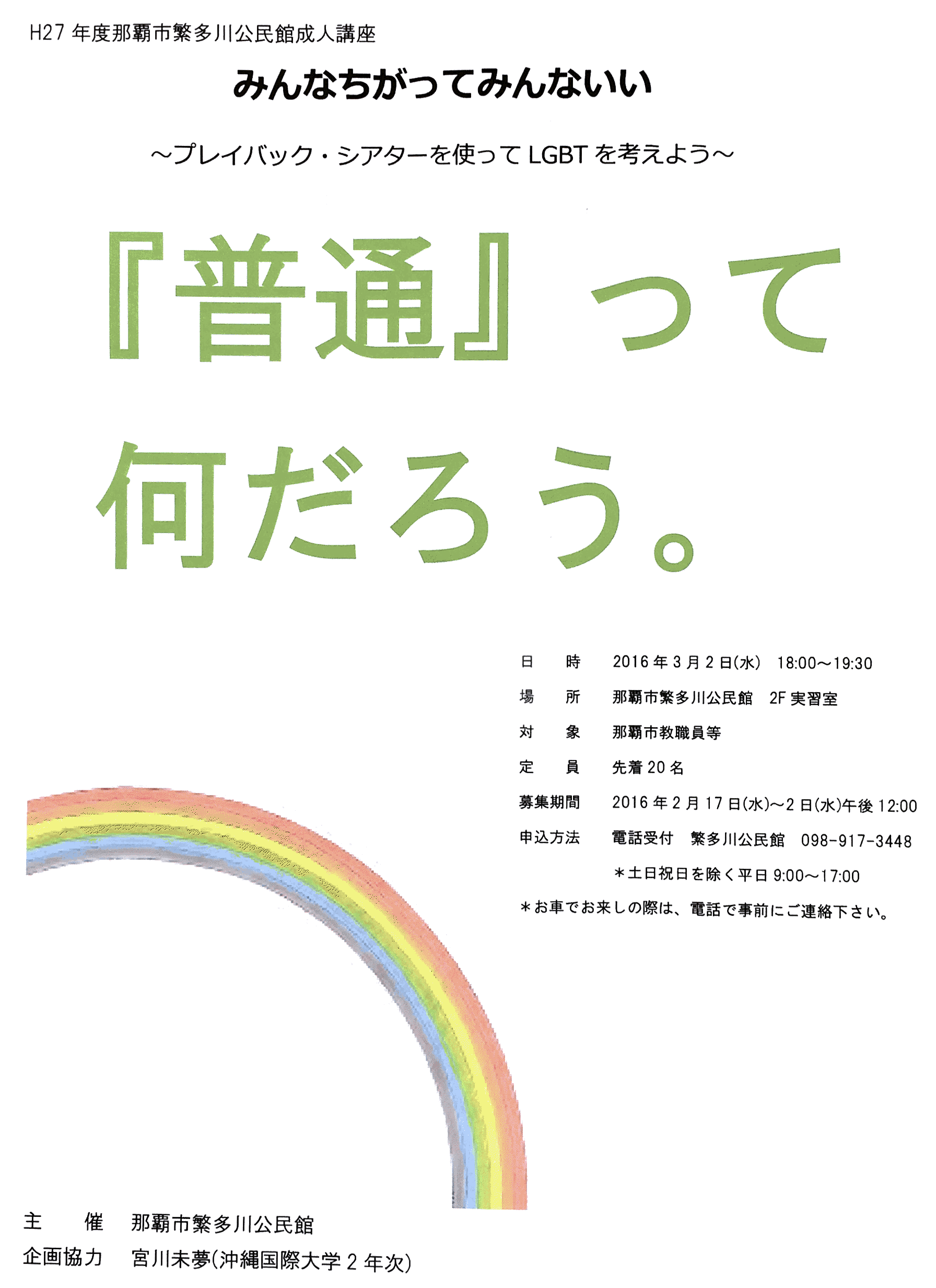 【受講者募集】プレイバックシアターを使ってLGBTを考える